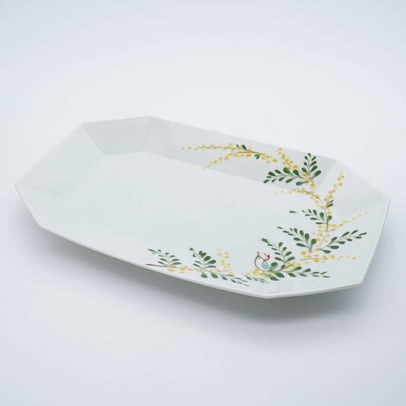 ミモザと小鳥/八角長皿(大) |空萌工房...