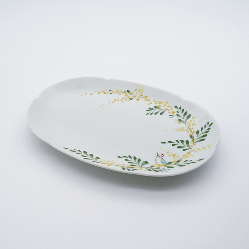 ミモザと小鳥/八角長皿(大) |空萌工房...