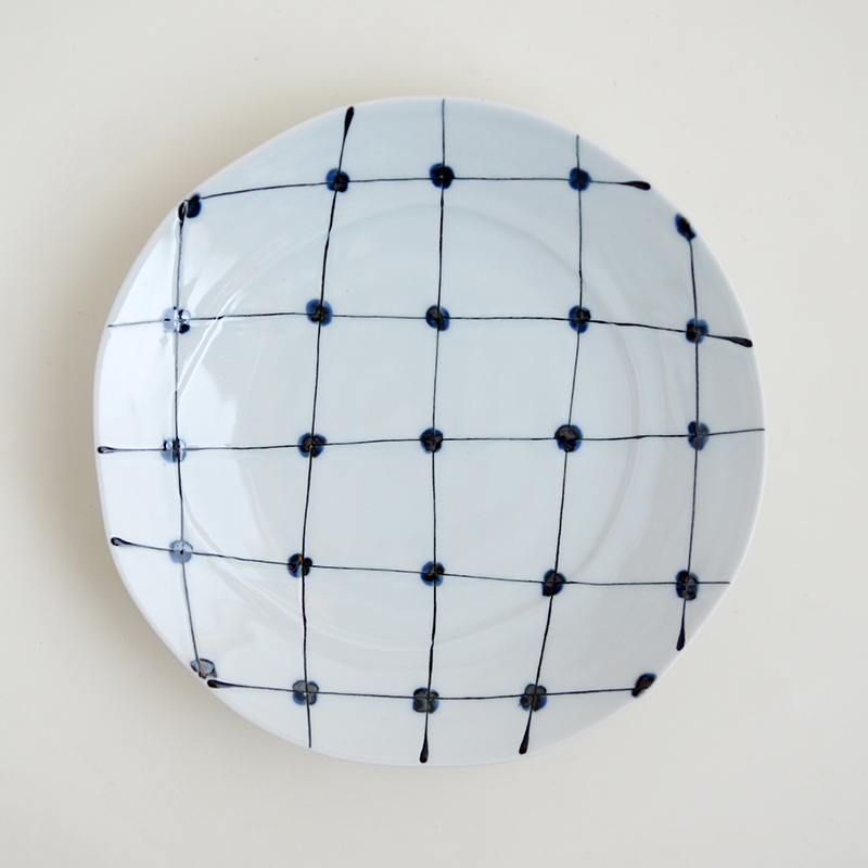 波佐見焼 福峰窯 点格子 丸皿 なぶり3...