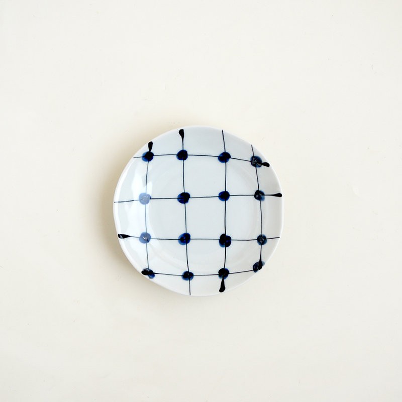 波佐見焼 福峰窯 点格子 渕取角銘々皿