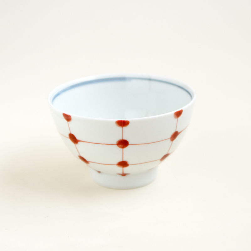 波佐見焼 福峰窯 点格子 茶碗 赤